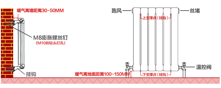 御用壁挂式散热器,为水暖系统特殊定制的固定挂钩,耐高温、承重力强、不变形
