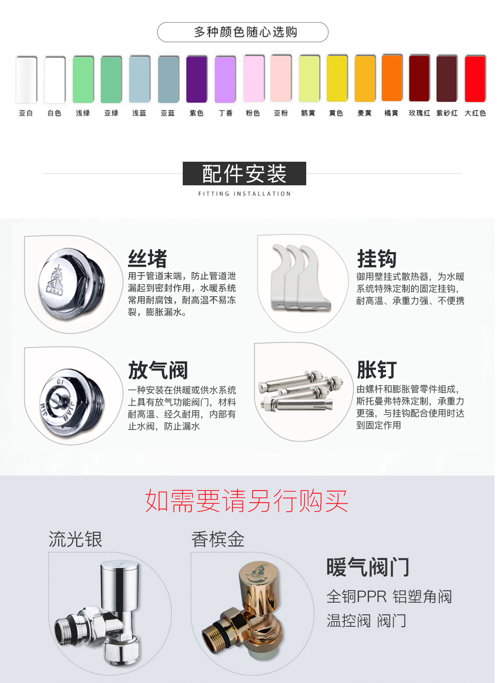 御用壁挂式散热器,为水暖系统特殊定制的固定挂钩,耐高温、承重力强、不变形